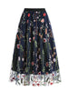 This Women's Embroidered Hippie Skirt is a true work of art, featuring a luxurious array of floral embroidery that cascades down a deep navy backdrop. Each stitch brings to life vibrant flowers and delicate foliage, creating a lush garden scene that is both enchanting and visually stunning. The fine detailing in the embroidery showcases a range of colors from reds to greens, adding depth and texture to the skirt. Made from lightweight fabric, the skirt flows beautifully with every movement, embodying the essence of nature and femininity.